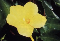 Übersetzt wird der Name dieser auffallenden Kletterpflanze, die aus Brasilien stammt, mit „himmlischer Gebieter". Sie trägt reichlich hellgelbe röhrenförmige Blüten, die mit ausladenden Ausbuchtungen von acht bis zwölf Zentimetern Breite versehen sind und einen milden Duft verströmen.