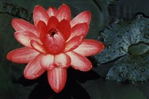 Eine unglaublich schöne, tropische, magentafarbene Seerose, die nachts blüht, die ihre Blütenblätter am frühen Morgen schließt, um sie dann am folgenden Abend wieder zu öffnen.