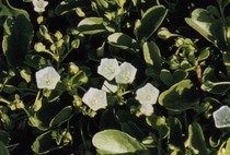 Diese einheimische Kletterpflanze wächst in Küstennähe und trägt blassblaue Blüten. Ihr Name wird mit „Rock der Hi'iaka" übersetzt. Nach der Legende kehrte die Göttin Pele von einem langen Fischfang an den Strand zurück. Sie stellte fest, dass die Pflanze sich über ihre Schwester Hi'iaka ausgebreitet hatte und sie so vor den Sonnenstrahlen schützte.