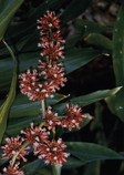 Diese Pflanze kann bis zu sechs Meter groß werden, sie trägt lange Dolden pinkfarbener Blüten, die am Abend einen moschusartigen Duft verströmen. Später bilden sie leuchtend orangefarbene Beeren.